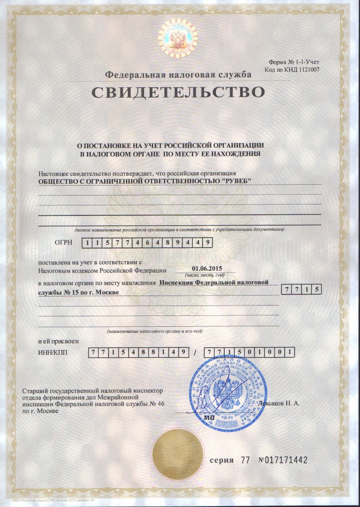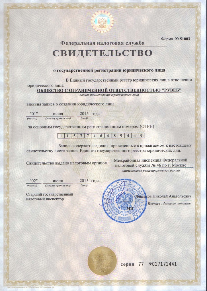 ЗАО "РУВЕБ", ИНН 7715389652, КПП 771501001